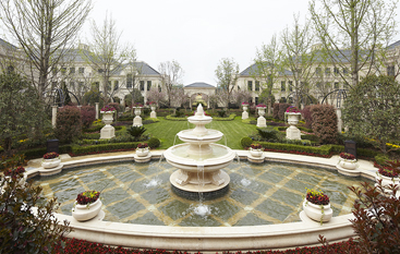 法式排屋的规划布局多遵循中轴对称的原则,注重突出仪式感与价值感。注重景观和建筑立面相互的借景和对景,组团内建筑平行布局,边套错落布局,形成围合感,后院强调私密性。